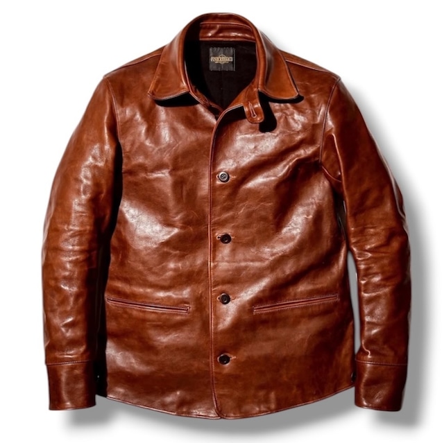 FINECREEK &Co. 山﨑氏が『馬革の可能性を追求する』という ブランドコンセプトのもと新たに立ち上げた FINE CREEK LEATHERSの姉妹ブランド ACCO008 Drifter ....ドリフター [OUTLINE] 1930年代のカーコートをベースに FINE CREEKらしく再構築された新モデル。 往年のディテールを踏襲しながらも 洗練されたシルエットに落とし込み 新開発のレザーを贅沢に使用し製作。 フロントは左右それぞれ一枚革 バックは大判の革を贅沢に用いた2パネル構成。 革本来の表情を最大限に引き出した仕様。 [LEATHER] レザーには、1.3mm厚の渋鞣し・顔料仕上げ 多脂革の茶芯ホースハイドを採用。 顔料仕上げでありながら、まるで染料仕上げの ような柔らかさと表情を持ち、着用を重ねるごとに プルアップし、色味が深く変化。 刻まれるシワとともに生まれるコントラストが、 唯一無二の経年変化を描き出す。 [ Detail] 四つ穴ナットボタン チンストラップ、カフスボタンを装備。 裏地にはコットンネル選定 両内側にはポケットを配置し、実用性も確保。 * ACCO003 Arcadiaと同等サイズ感 Size…36 / 38 / 40 / 42 Color…Brown Material…Horsehide Lining...Cotton 100% (Specs) Size36 肩巾43cm 身巾48cm 着丈67cm 袖丈62.5cm Size38 肩巾45cm 身巾50cm 着丈69cm 袖丈63cm Size40 肩巾47cm 身巾52cm 着丈 71cm 袖丈64cm Size42 肩巾49cm 身巾54cm 着丈 72.5cm 袖丈65.5cm *誤差ご了承ください