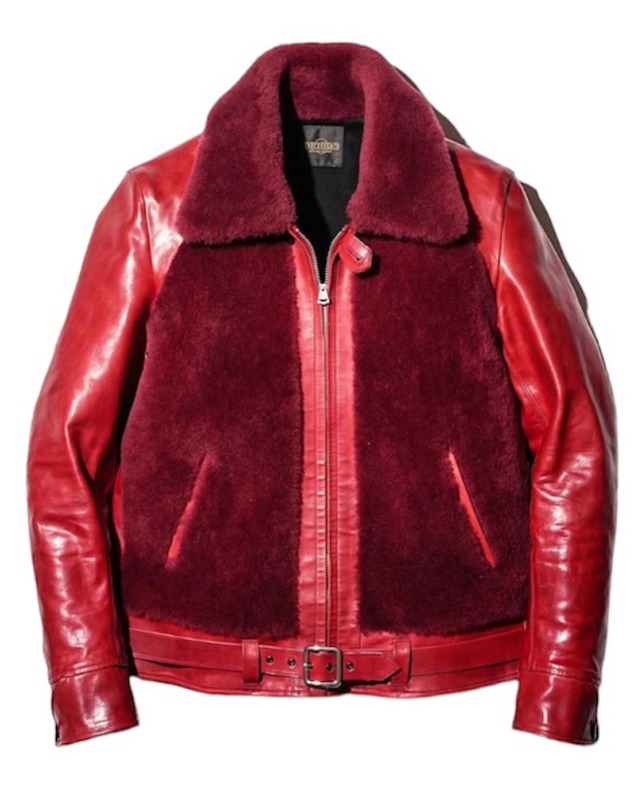 FINECREEK &Co. 山﨑氏が『馬革の可能性を追求する』という ブランドコンセプトのもと新たに立ち上げた FINE CREEK LEATHERSの姉妹ブランド ACJK055 / Innocence Horseイノセンス RD 2024 秋冬Collection 人気の熊ジャンが馬革になって再登場 1930年代に多く見受けられる スポーツジャケット通称「熊ジャン」を ファインクリークらしく美しいシルエットに 存在感・高級感のあるデザインにて製作 [ LEATHER ] 植物タンニン鞣し、芯通し染料仕上げの ホースレザーは「Arcadia」同様 いやそれ以上にオイル量を多く含んでおり 黒の強い、発色の良い深みのある"赤"が特徴的 また1.3mm〜1.5mm厚程で肉厚かつ かなりの重厚感ながら着用すると驚く程 見た目以上に軽く抜群の着やすさ [ MOUTON ] 上質なリアルシープムートン選定 流しのストレートなファーを採用し 最高級の肌触りと保温性を確保 味わい深い色みをオリジナルで 色出しから細かく演出 [ OUTLINE ] 元ネタは代表山﨑氏のリアルヴィンテージ 一般的な熊ジャン=馬革と思いがちだが 珍しくも、鹿革のグリズリージャケット 袖付けもセットインでありながら 「ラグラン」っぽく絶妙な位置に拘り製作 [ DETAIL ] ヴィンテージ感を忠実に再現した付属仕様 フロントのポケットは目立たないよう製作 [ Lining ] 着馴染みの良いコットン地を採用 Size…36 / 38 / 40 / 42 Color... Red Material…Horsehide / Sheepskin Lining...Cotton 100% (Specs) Size36 肩巾42cm 身巾50cm 着丈59cm 袖丈63cm Size38 肩巾44cm 身巾52cm 着丈61cm 袖丈64cm Size40 肩巾46cm 身巾54cm 着丈 63cm 袖丈65cm Size42 肩巾48cm 身巾56cm 着丈 65cm 袖丈66cm ・天然の皮革を使用している商品ですので 部分的に色差や筋跡、凹凸、多少のスレ傷等があります ・摩擦や水濡れによる色落ちや色移り、塗膜の剥がれ 染料の移染等が発生する場合があります ・変色やカビの原因となることがありますので 水に濡らさないようご注意ください ・天然の皮革を使用している商品ですので 色味やサイズ、風合いなどが多 少異なることがあります ・天然素材を使用した商品の、色模様、形の不揃い 風合い等を理由とした返品交換は お客様の都合によるものとさせて頂きます ・塩化ビニルなどの樹脂に長時間密着させると、 粘りつきや、色移りの原因となりますのでご注意下さい ・シンナー、ベンジンなどのアルコール系溶剤の ご使用は避けてください ・毛皮を使った製品は毛抜けが発生する場合があります ・皮革を使用した衣料品のクリーニングにつきましては 専門店にお問いあわせください