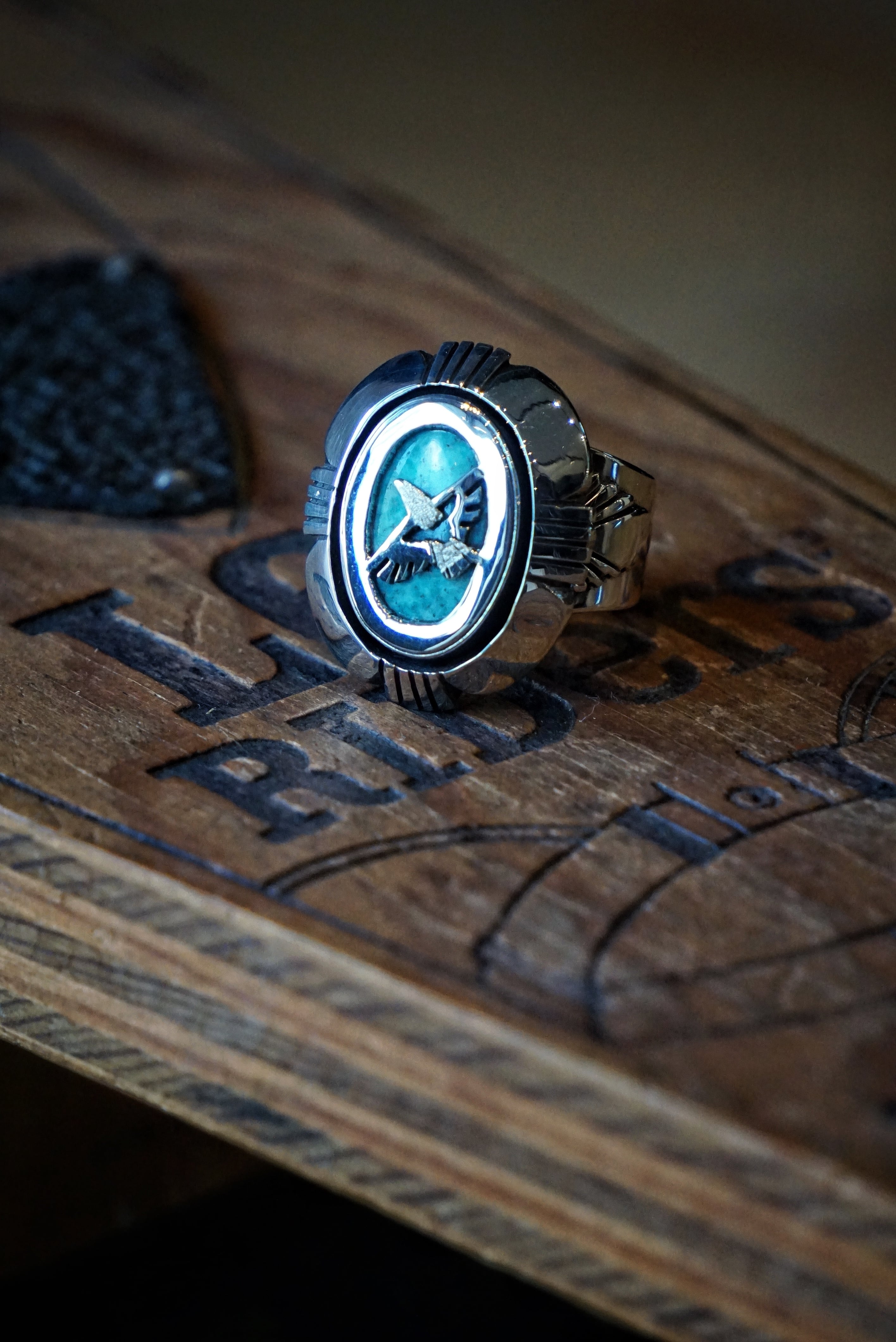 シルバーのイーグルがセッティングされた逸品