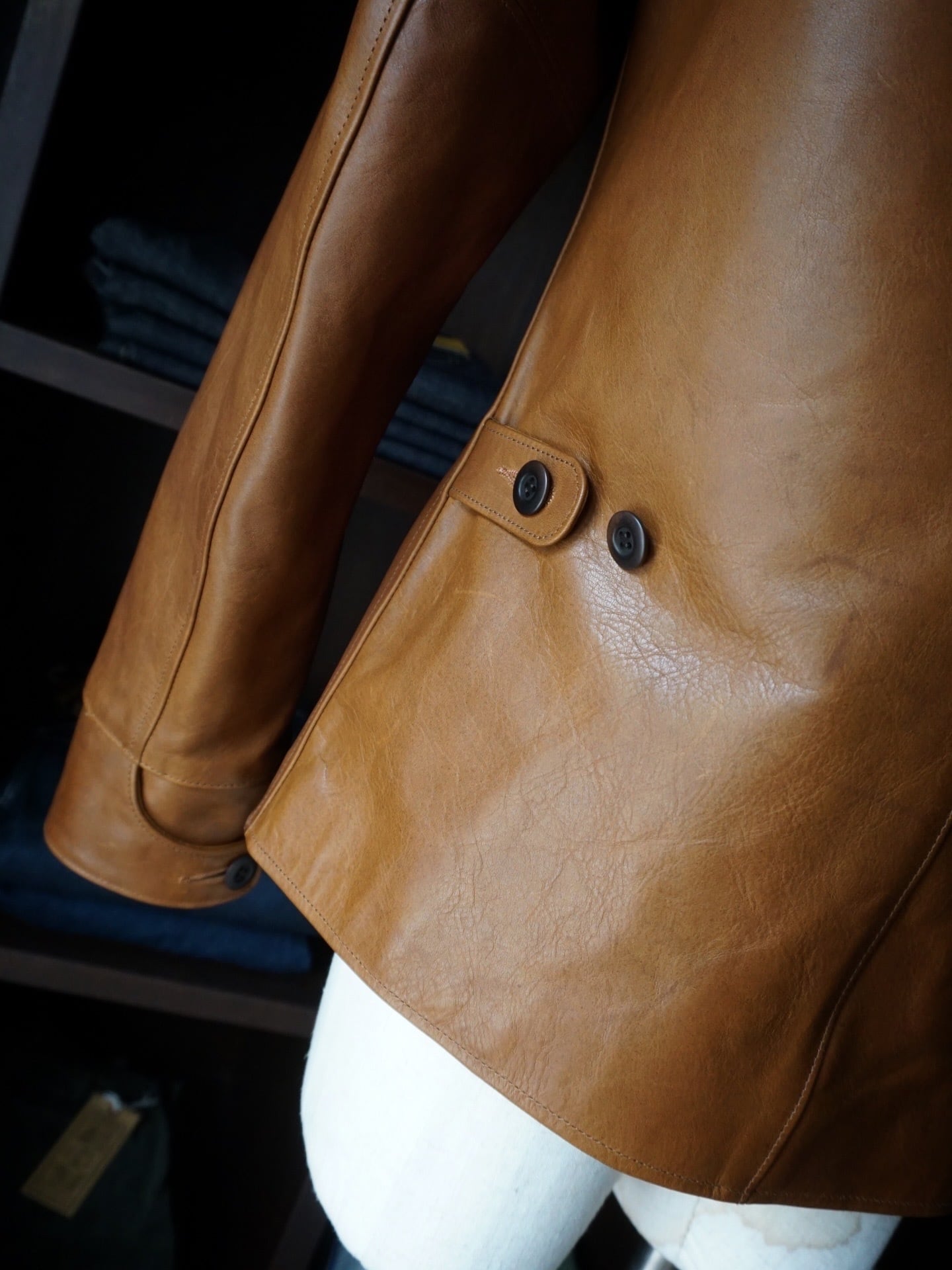 レザーには、1.3mm厚の渋鞣し・顔料仕上げ
