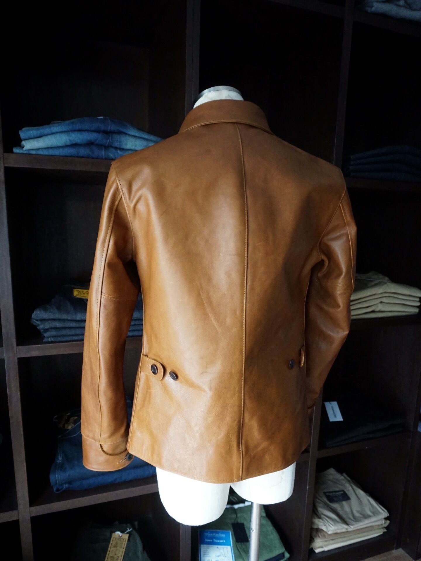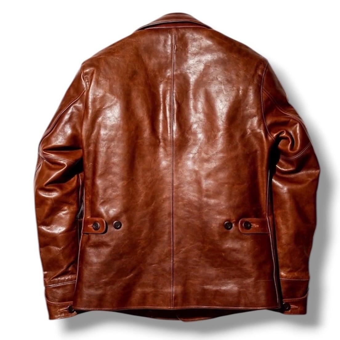 バックは大判の革を贅沢に用いた2パネル構成。