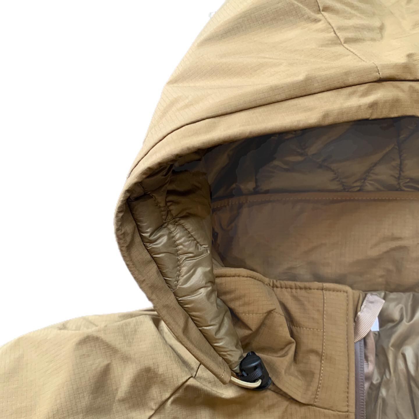 フードを襟に収納できる機能性を配備