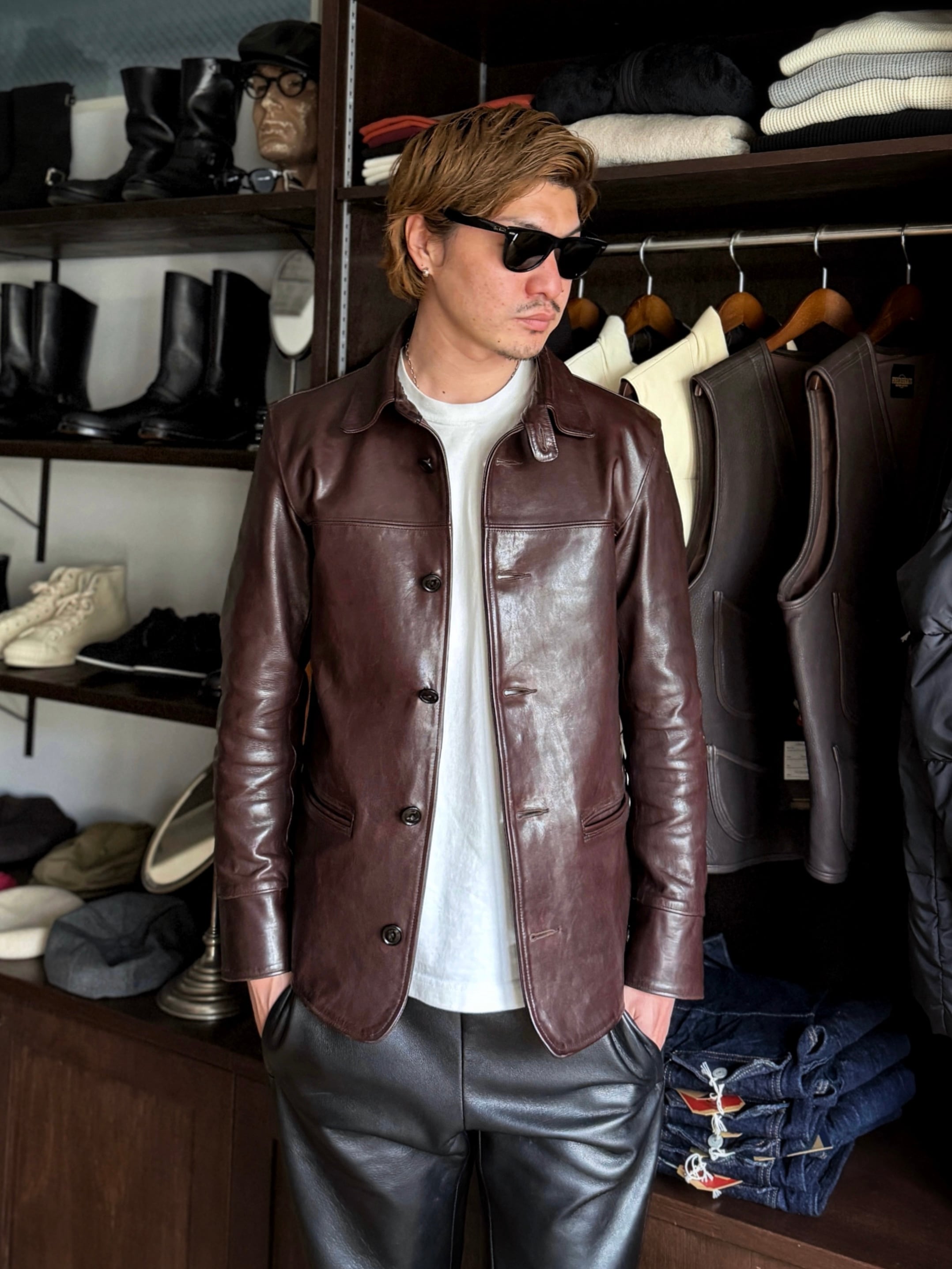 アンドコー初のレザーカーコートを