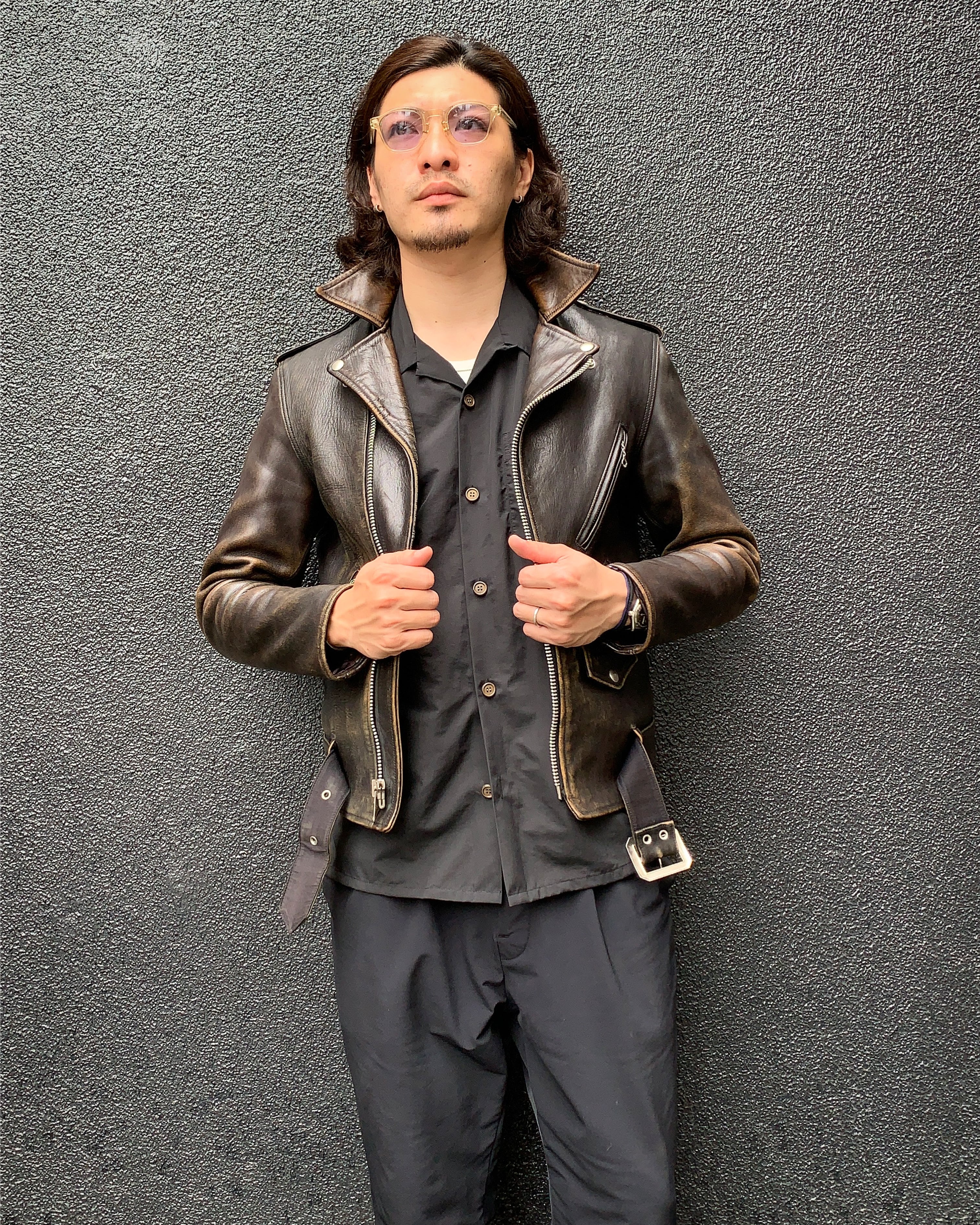 革ジャンを中心に様々なコーデで