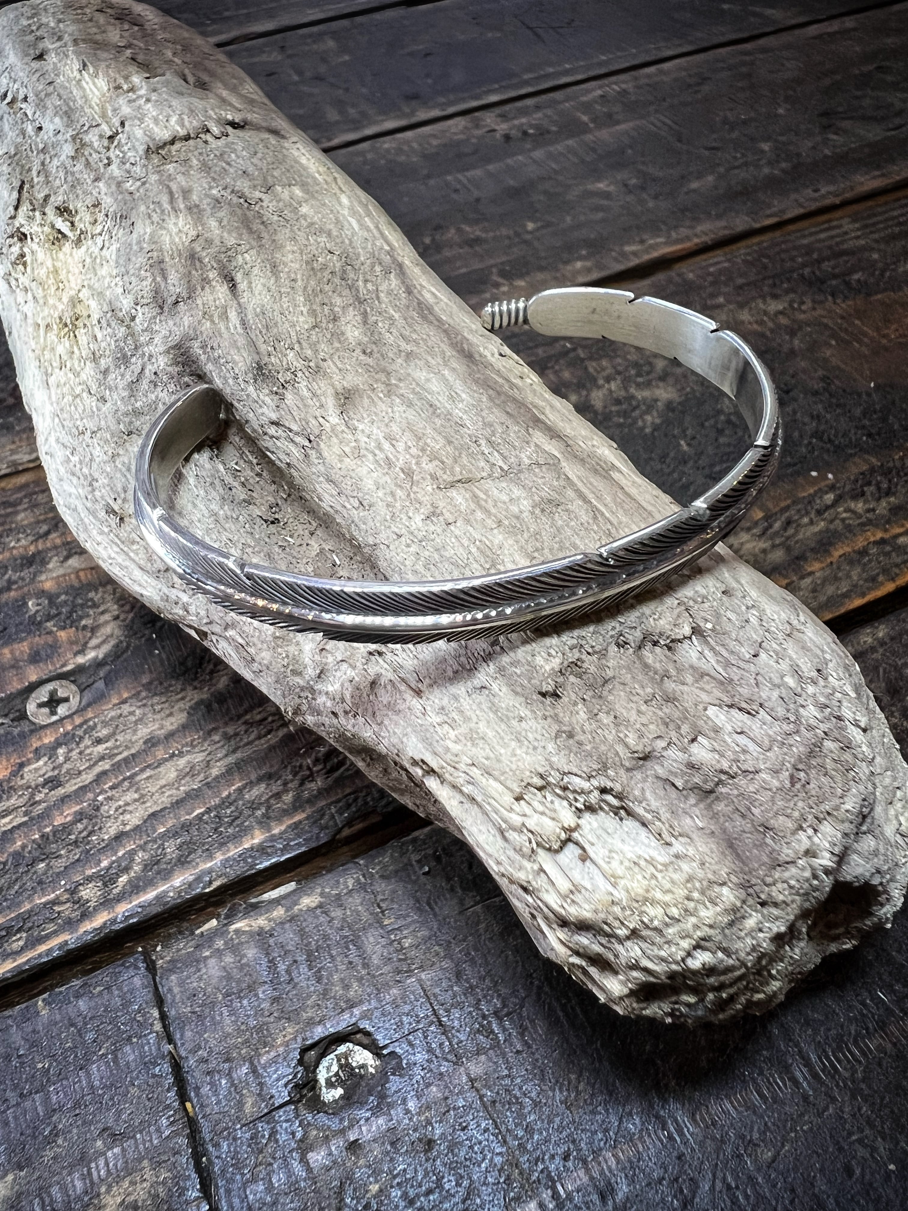 丁寧に打ち込み丁寧に製作されたフェザーバングル