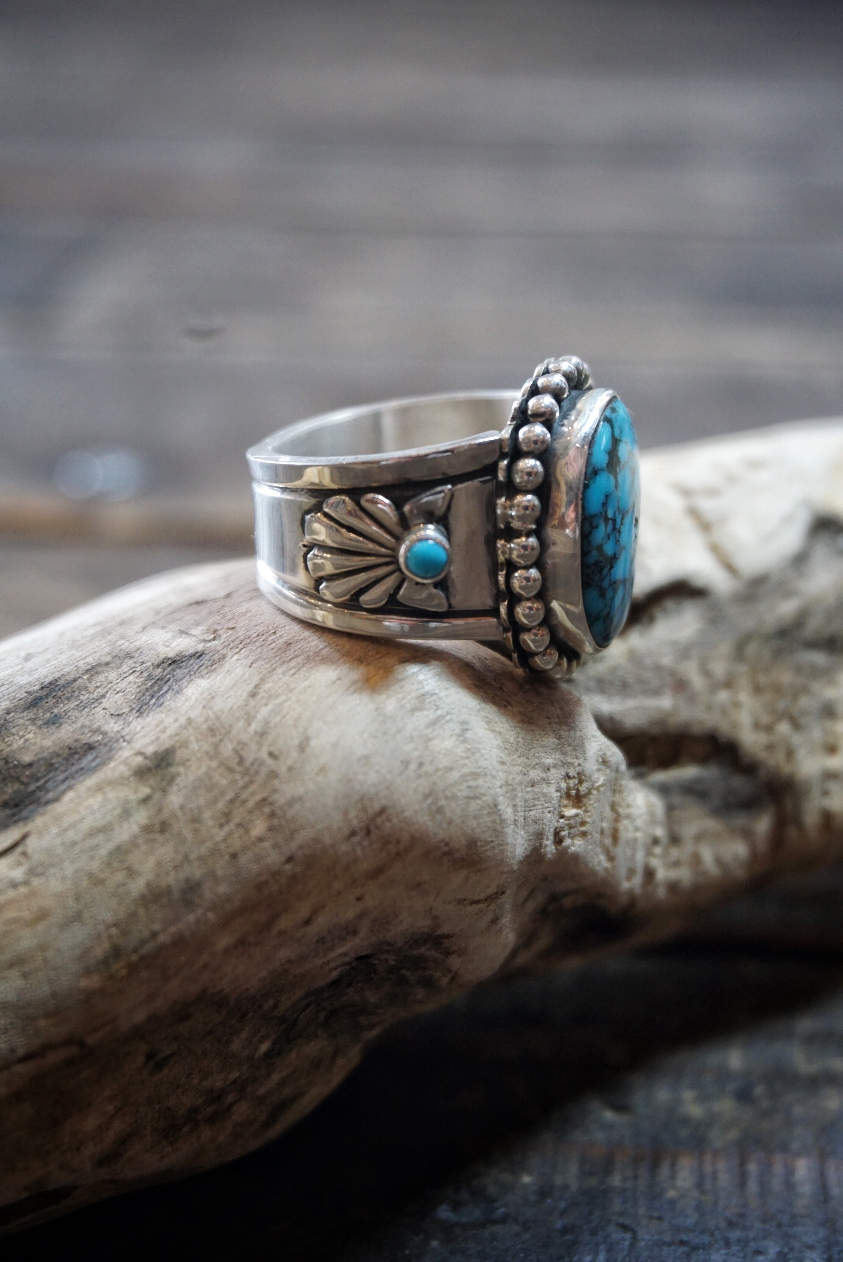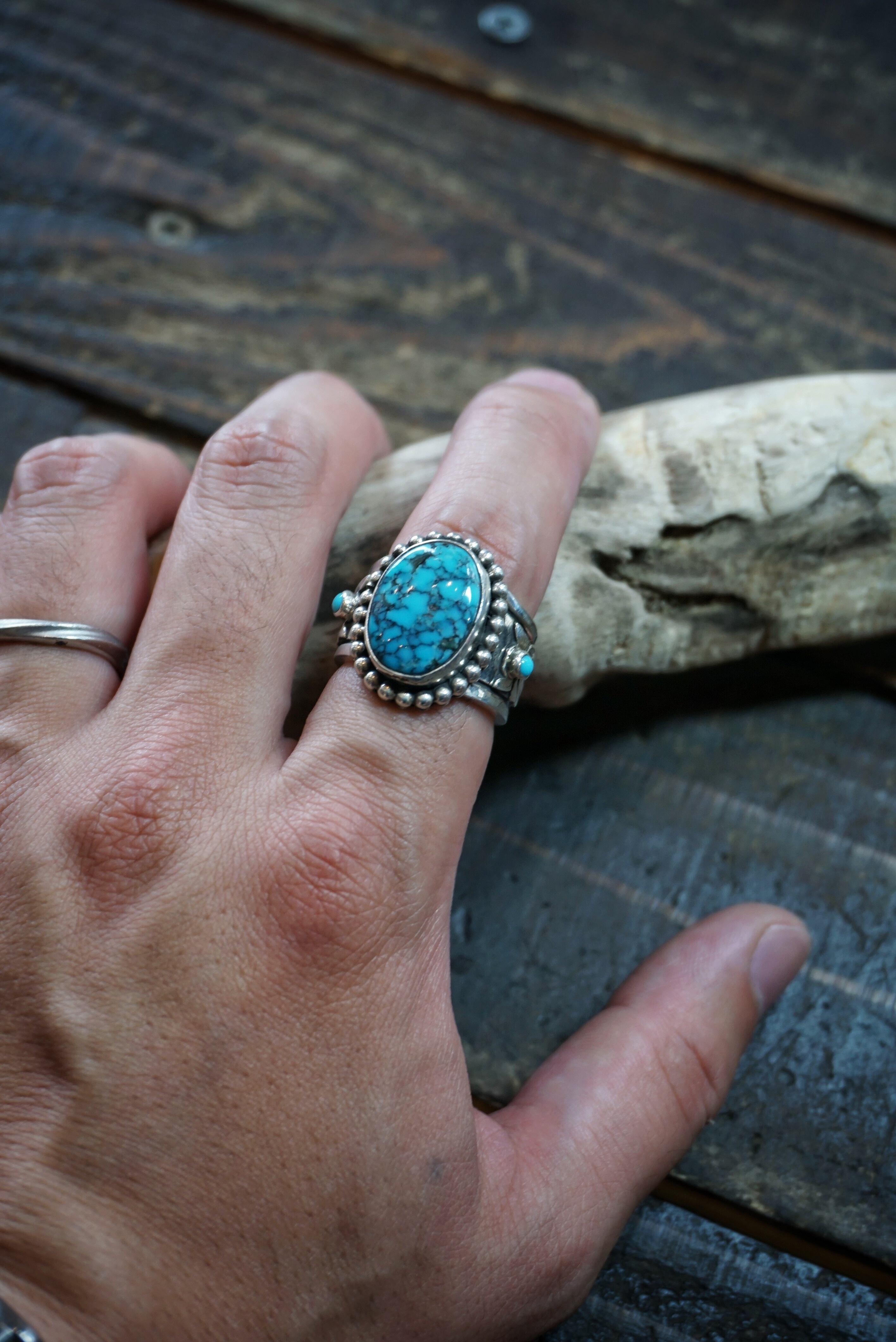 サイドにもそれぞれ小ぶりなターコイズを配置し