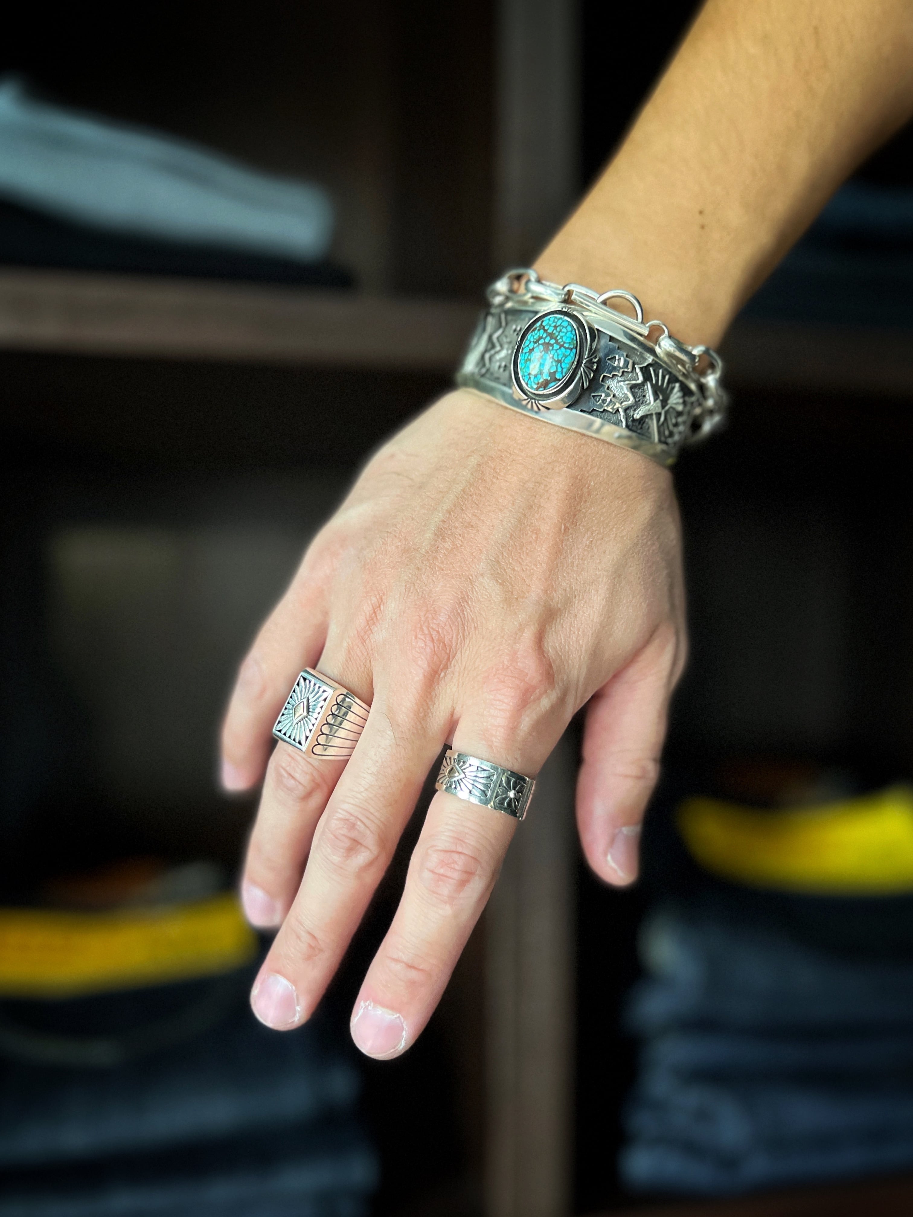正確かつ緻密なシルバーのカッティング技術(オーバーレイ)やデザイン構成など、まさに経験と知恵が詰まったネイティブ・アメリカンジュエリー。